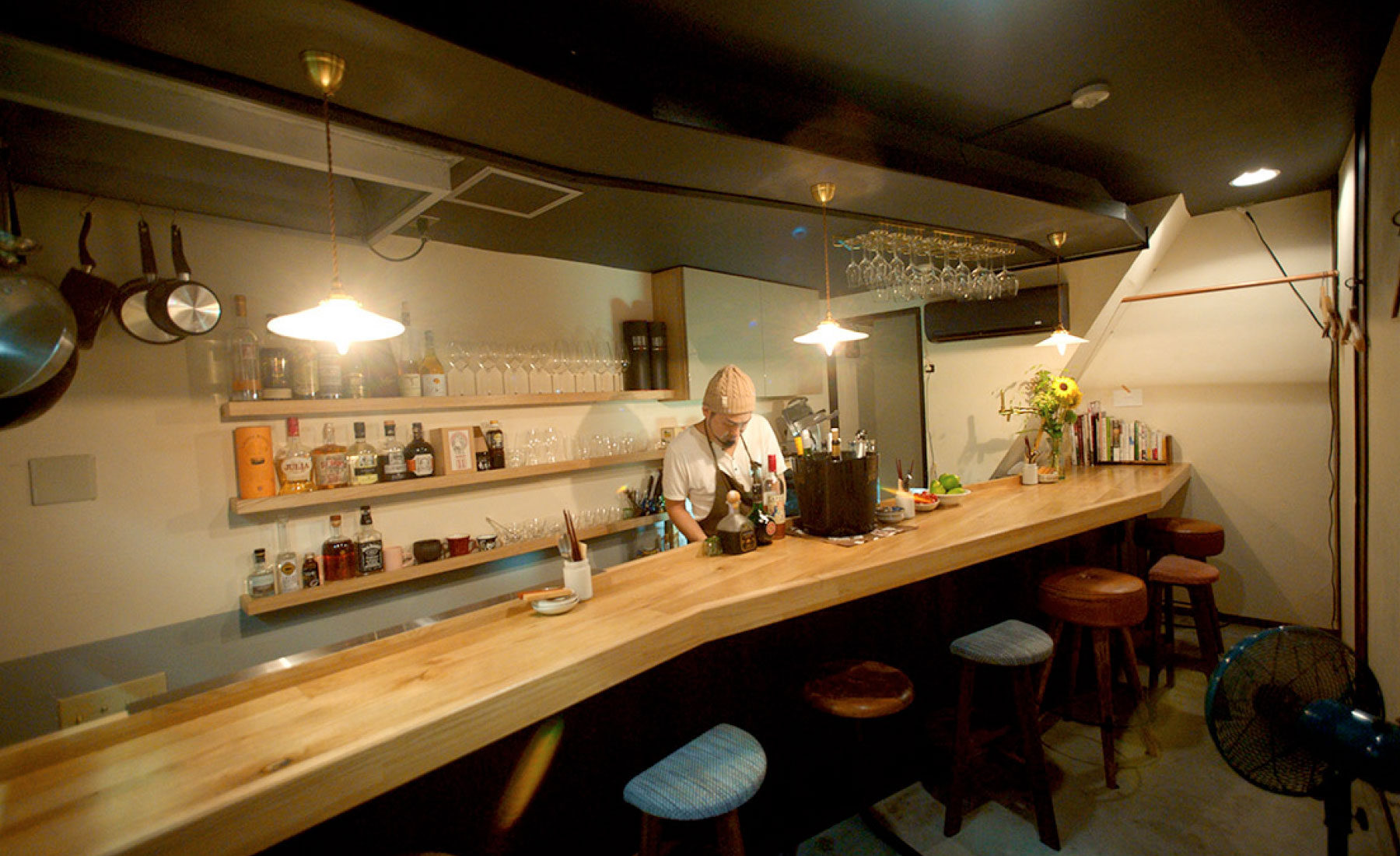 長屋が連なる仙台の壱弐参横丁。40年ここで営業していたスナックをワインバーに変身。おしゃれなオーナーのこだわりをカタチにしました。