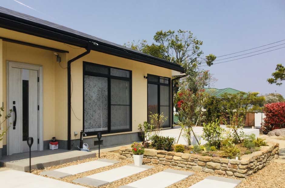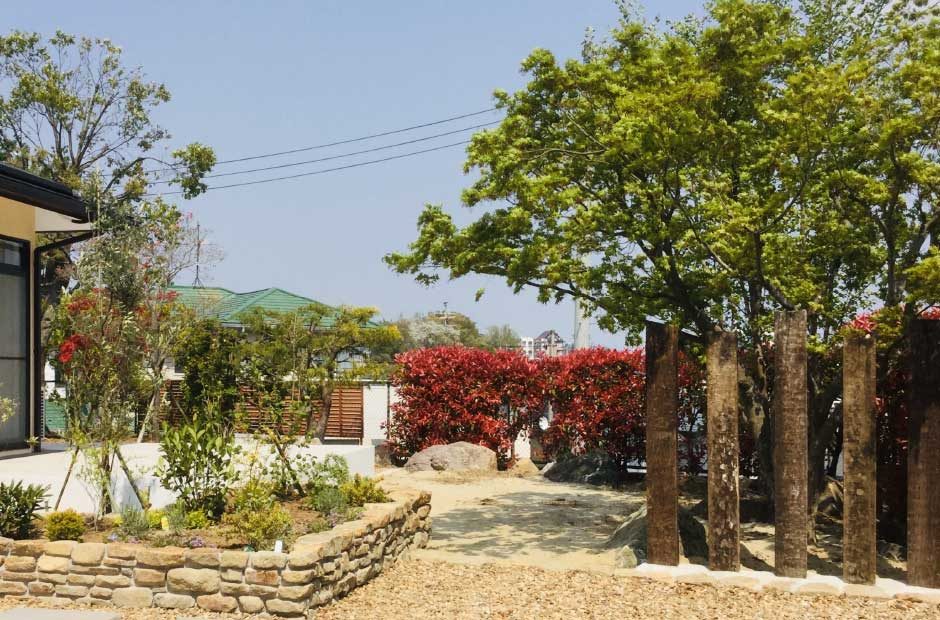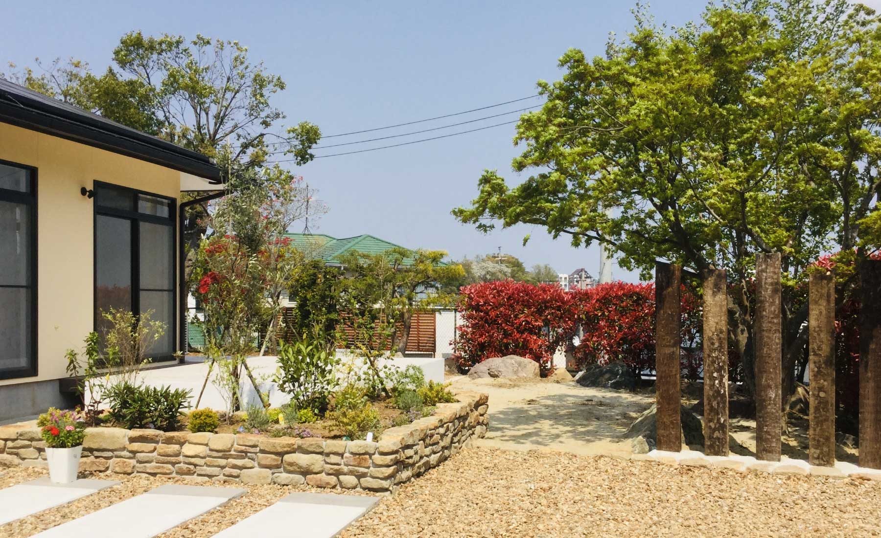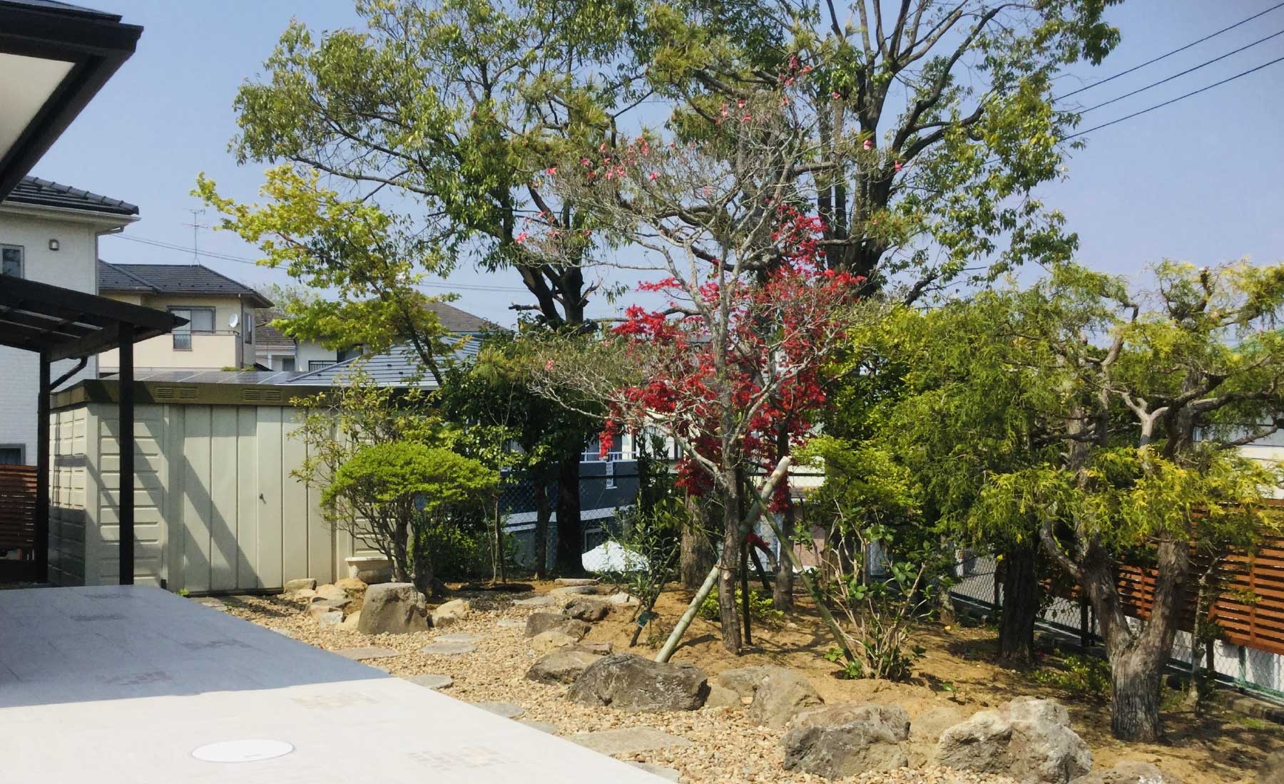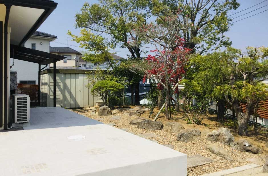 手入れが少し行き届いていないと、だらしなく見えやすい純和風のお庭。手間がかかるため、庭が負担になっている方がという声が聞かれます。そこでゆる〜く木々の自然な姿を楽しむ洋風ガーデンに変更。育てやすい植物を選び、季節を問わず明るくおしゃれなイメージにリフォーム。 外観だけでなく家の中からの見晴らしも重視して、慎重に植物の足し引きとその位置決めを行いました。20年後に植物が根ざした姿まで想像してつくりこむ庭はワクワクがいっぱいです。