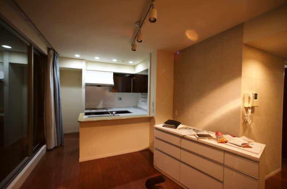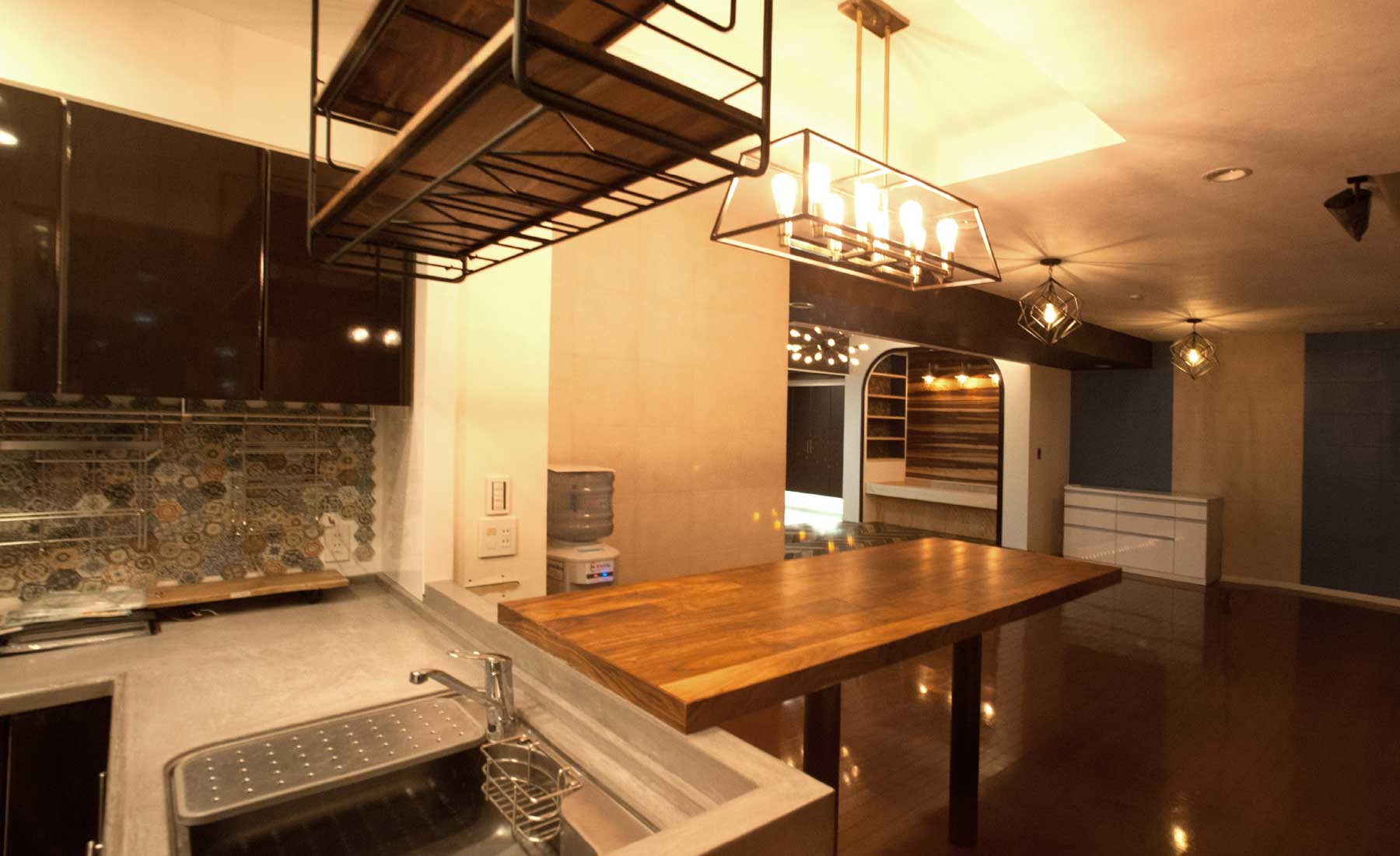 「家族がリラックスできて、ゲストは扉を開けた瞬間からパーティーオンできる」そんな住まいを目指して街中マンションをリノベーション。アーティストをご職業にする施主の希望を第一に、丁寧にカタチにしていきました。暮らす人訪れる人、それぞれが思い思いのスタイルで自由な距離感で暮らすという欧米的な住まいが完成しました。