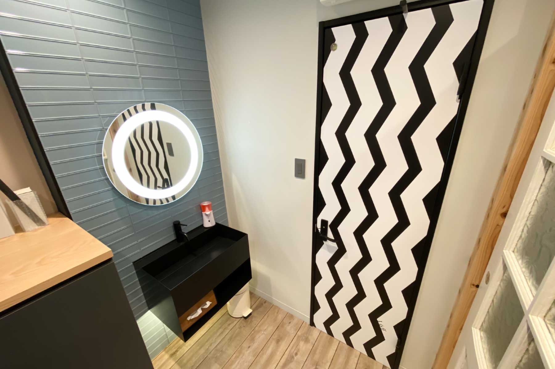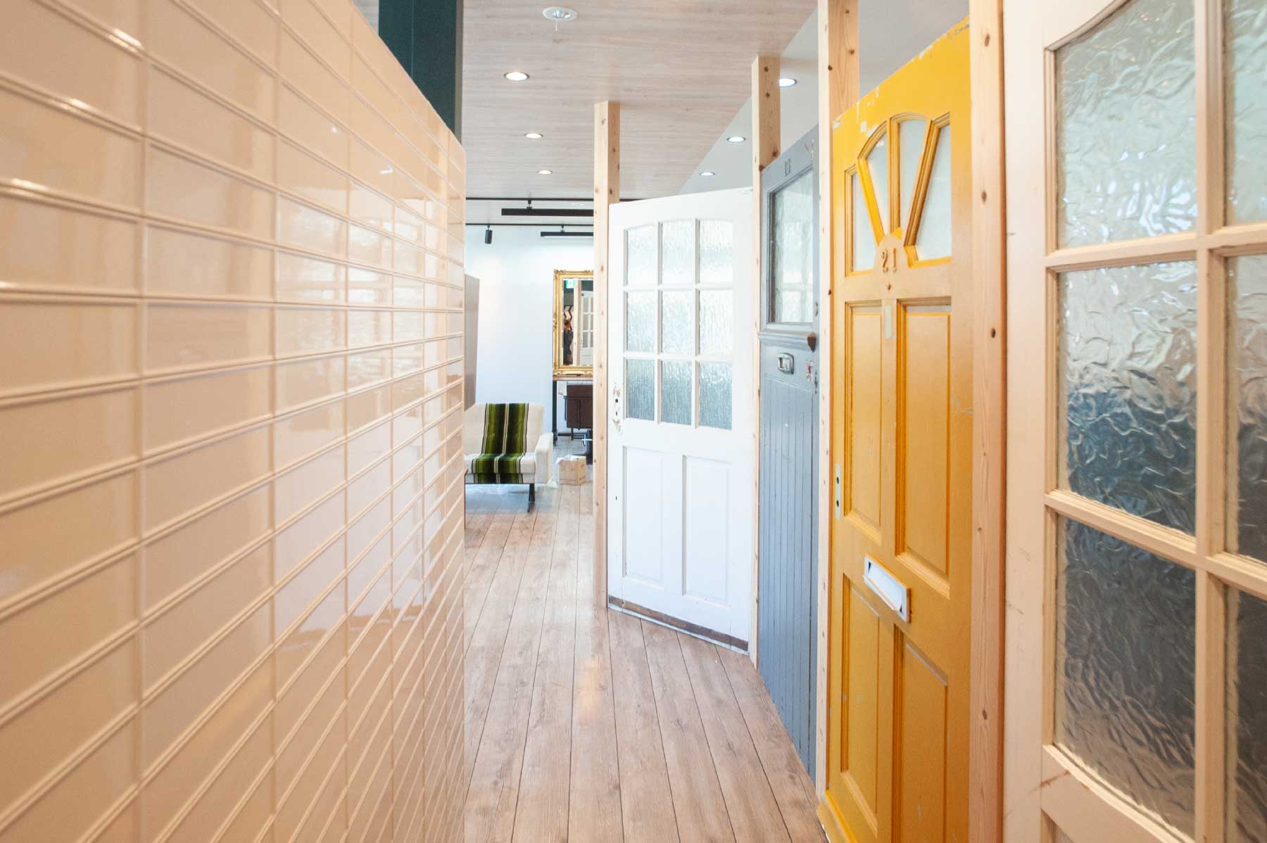 ビルの共有スペースである為エントランスドアは変える事ができません。そこでドアを開けるといい意味で来場者の期待を裏切る事、お店にいる時間はビル内に居る事を忘れる居心地の良さい、そんな点に気をつけて作りました。