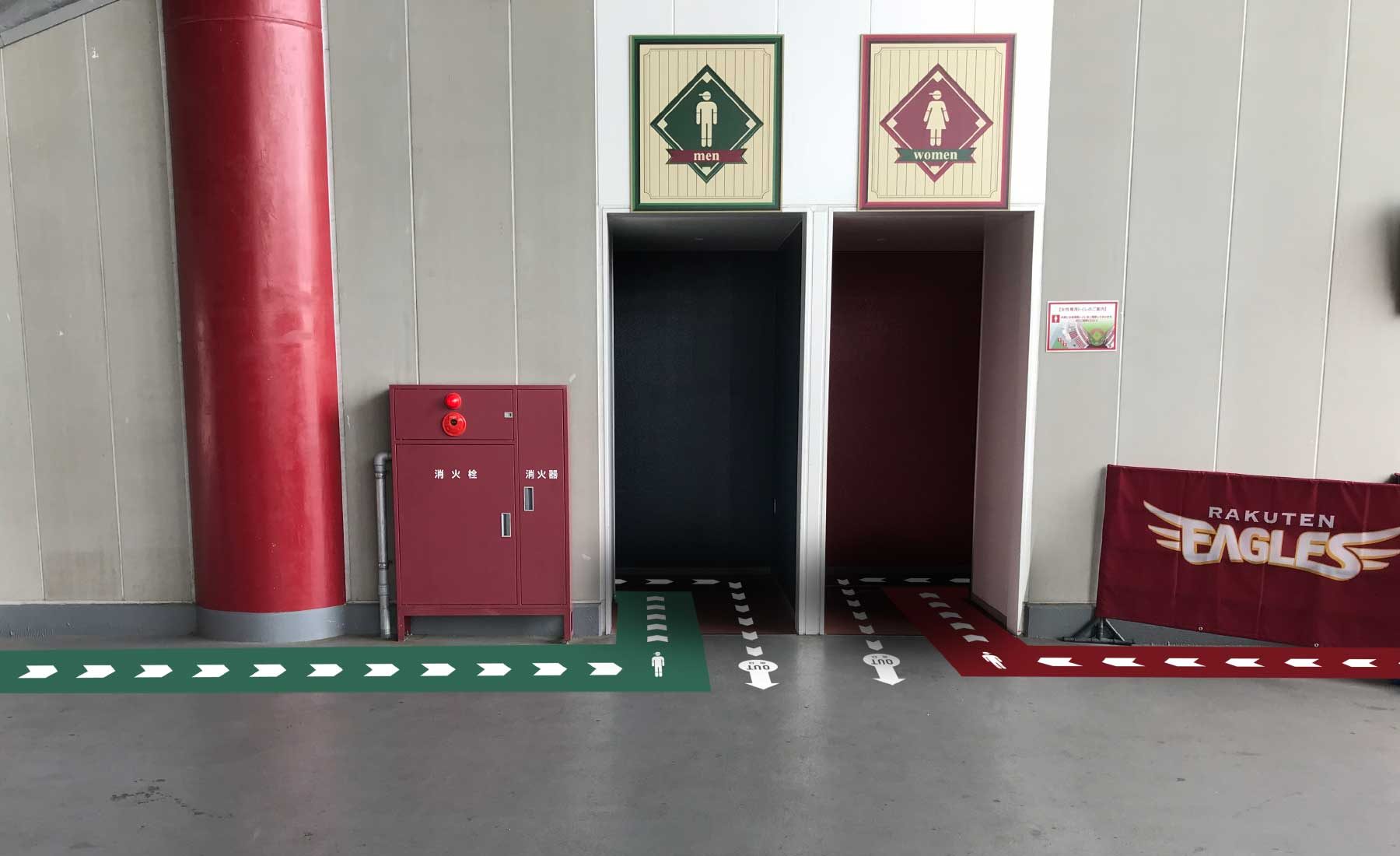 順番を守り行儀が良い我々日本人の事は海外でも度々話題になりますが、ここ東北はその傾向が強いと感じます。今回誘導サインのデザイン・施工をさせていただき、改めて東北モラルとサインの重要性を考える良い機会になりました。使用目的も使用時間もばらばらで老若男女が利用するトイレ。大勢が行き交うスタジアムのトイレでは丈夫さも非常に大切です。サインデザインで待ち時間を減らし快適利用に繋げることができます。行儀が良いからこそ非効率的になる場合もあるここ東北のサイン開発を今後も続けて行きたいと思います。