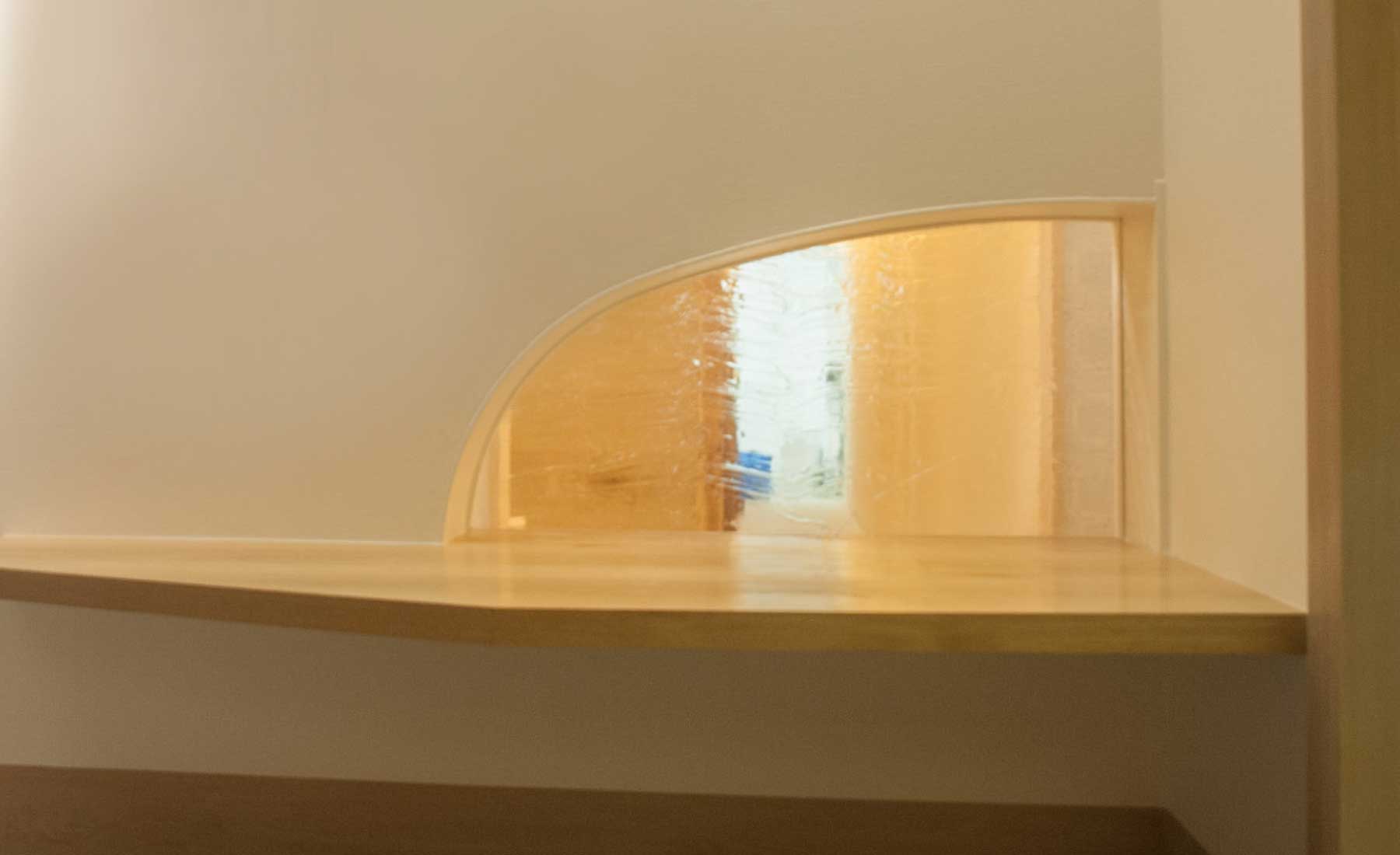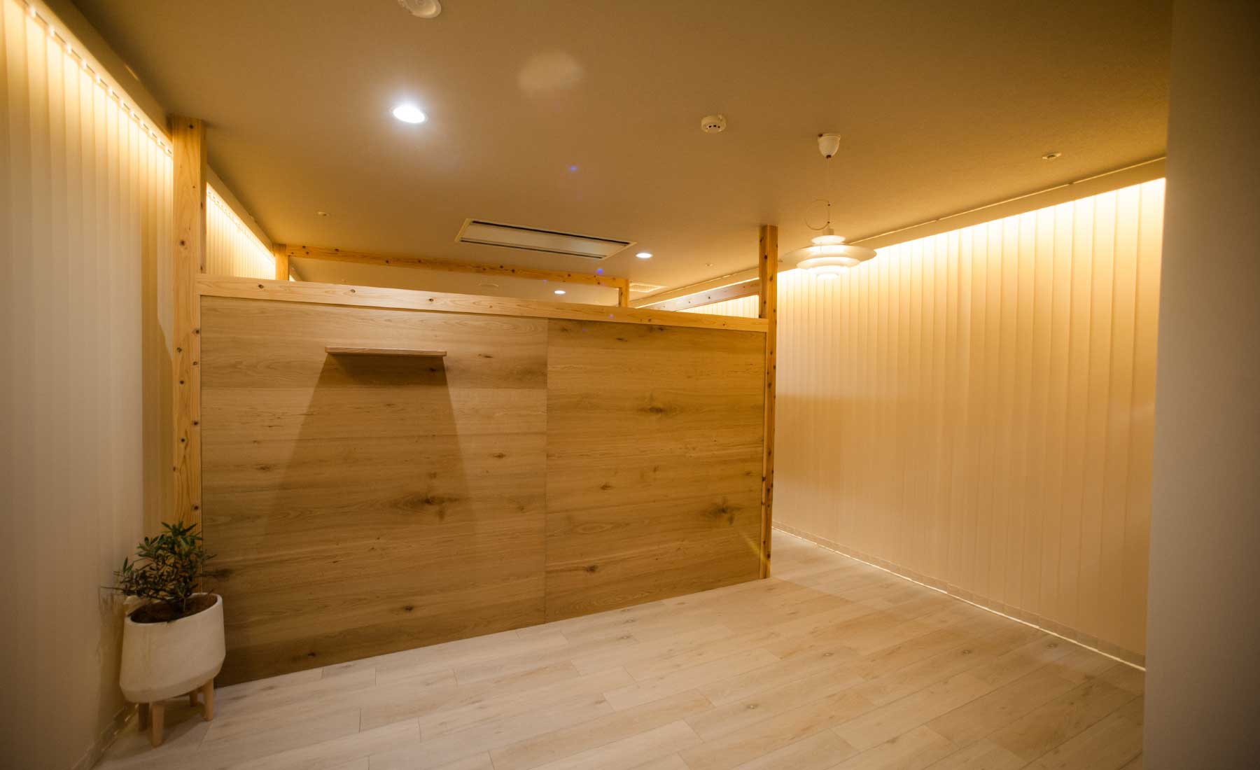電気設備のコントロール板や窓など、営業中のお店には必要のないもの。機能を残しつつ営業中の深いリラクゼーションのために間接照明を効果的に配置。営業・管理どちらにとっても使いやすさ重視のデザインを採用しました。