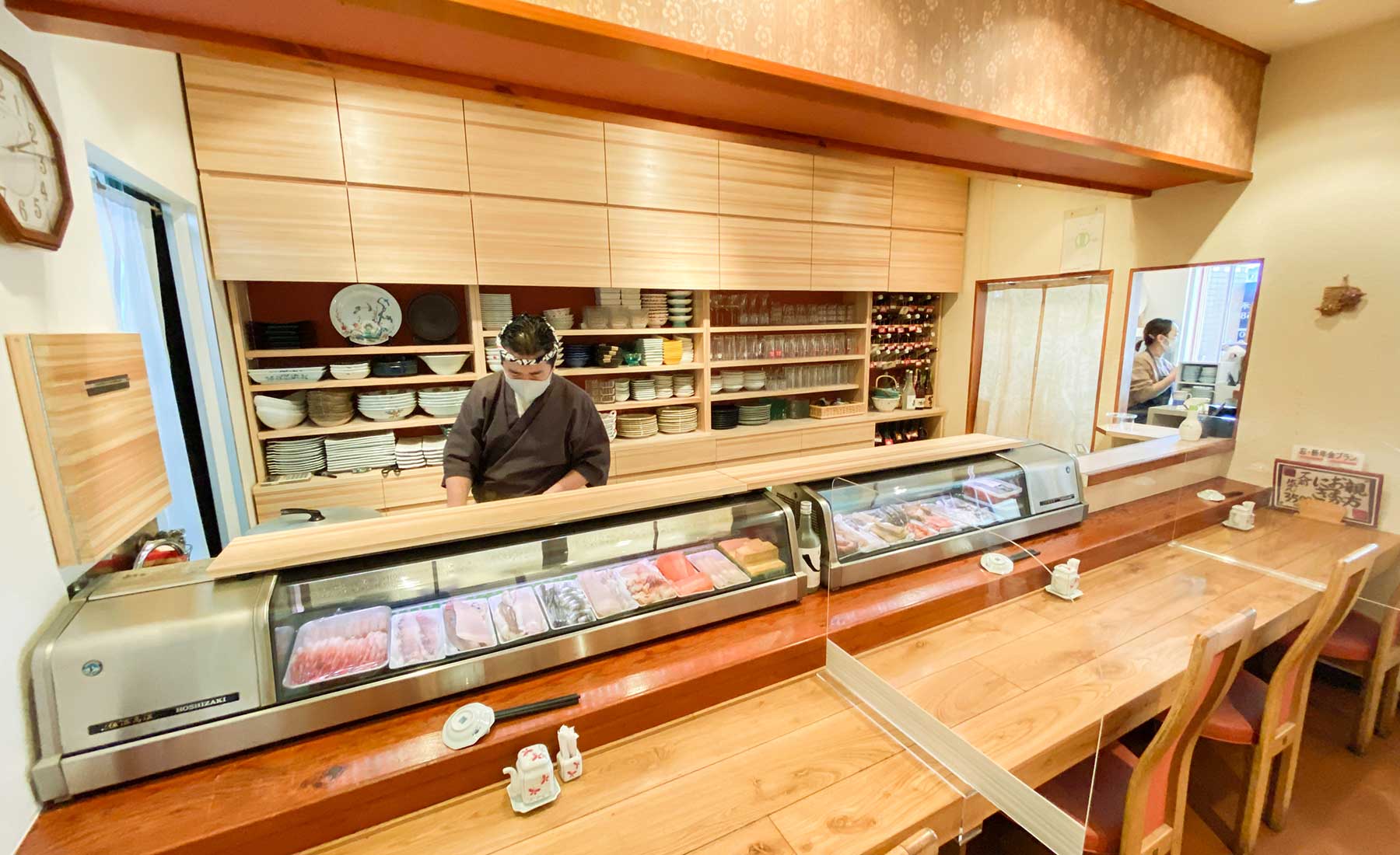 気軽に仙台のお寿司を楽しめる大人気のお店。昼夜問わず常にフル稼働の心臓部・カウンターバックをリフォームしました。お客様にはお家にいるようにリラックスしてほしいという親方の思いから、高級すぎるイメージにならないよう心がけて、使いやすさを追求しました。